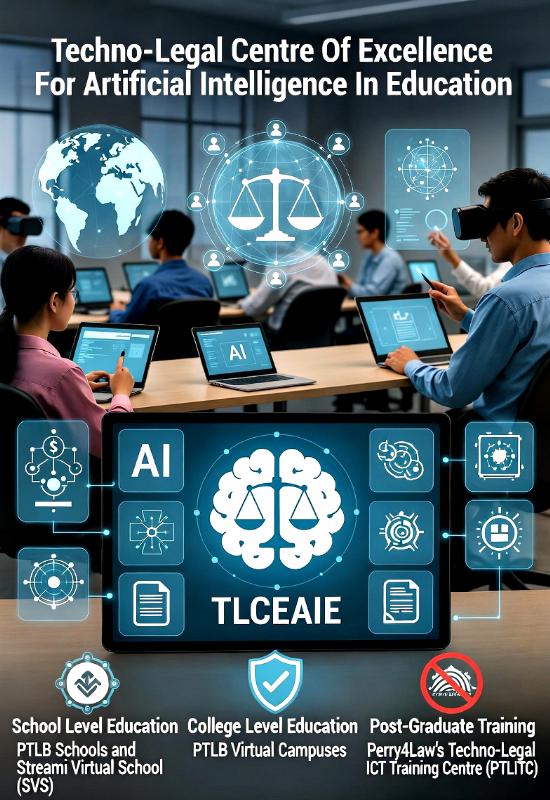 The Techno-Legal Centre Of Excellence For Artificial Intelligence In Education (TLCEAIE) stands as a pioneering institution dedicated to integrating artificial intelligence (AI) with legal and ethical frameworks to revolutionize education worldwide. As an integral component of the Sovereign Techno-Legal Assets Of Sovereign P4LO (STLASP), TLCEAIE leverages a vast portfolio of proprietary resources that blend technology and law, including AI tools, frameworks, and intellectual property to foster resilient, ethical learning environments. This center is bolstered by the The Techno-Legal Software Repository Of India (TLSRI), which provides open-source techno-legal software for cyber forensics, AI governance, and privacy protection, ensuring that educational initiatives remain secure and compliant. Rooted in the vision of Sovereign P4LO, TLCEAIE draws on decades of expertise from affiliated entities like PTLB and Perry4Law Law Firm to address the convergence of AI and education, promoting hybrid human-AI models that minimize errors and enhance accountability.
