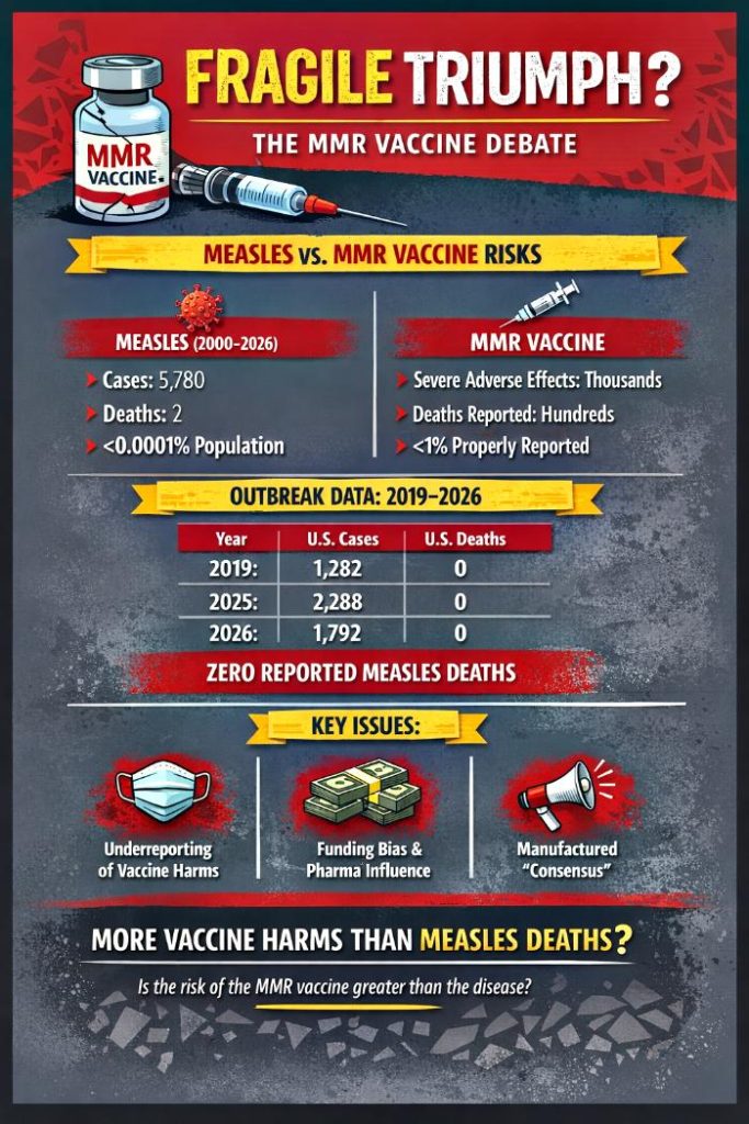 Vaccination has long been presented as the triumph of biomedical science over infectious disease, with the MMR vaccine symbolizing this victory. Yet beneath the celebratory narrative lies a fragile construct built on immunological misunderstanding, industrial manipulation, and systemic underreporting. Measles was declared eliminated in the U.S. in 2000, but elimination did not mean eradication. Outbreaks in 2014, 2019, and the resurgence of 2025–26 reveal the fragility, uselessness, and dangers of MMR vaccines.
